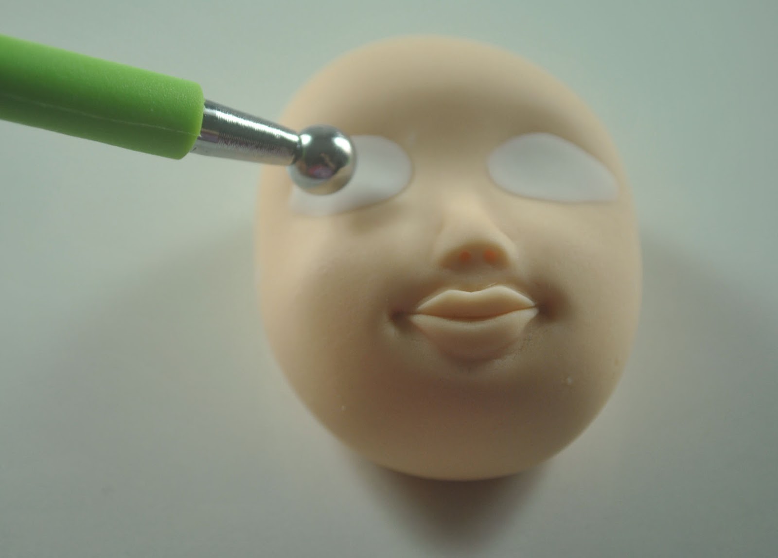 (13) Using a pointed fondant tool, press it on the ends of the lips, to make the fondant face smile some more.